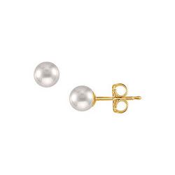 Akoya Cultured Pearl Stud Earrings : 14K Yellow Gold – 6 MM