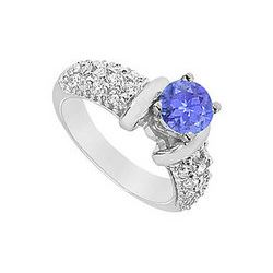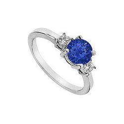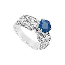 Sapphire And Diamond Engagement Ring : 14K White Gold - 1.25 CT TGW
