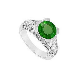 Emerald And Diamond Engagement Ring : 14K White Gold - 2.00 CT TGW