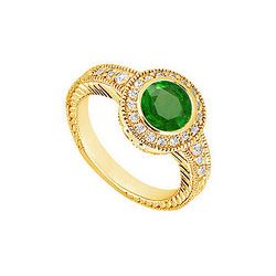 Emerald And Diamond Engagement Ring : 14K Yellow Gold - 1.25 CT TGW