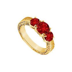 Ruby Three Stone Ring : 14K Yellow Gold - 1.50 CT TGW