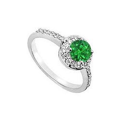Emerald And Diamond Engagement Ring : 14K White Gold - 1.00 CT TGW