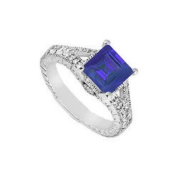 Sapphire And Diamond Engagement Ring : 14K White Gold - 2.50 CT TGW