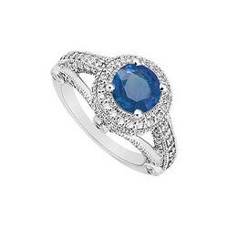 Sapphire And Diamond Halo Engagement Ring : 14K White Gold - 2.15 CT TGW