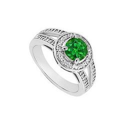 Emerald And Diamond Engagement Ring : 14K White Gold - 1.50 CT TGW