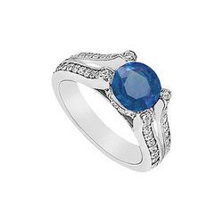Sapphire And Diamond Engagement Ring : 14K White Gold - 1.50 CT TGW