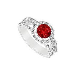 Ruby And Diamond Halo Engagement Ring : 14K White Gold - 1.50 CT TGW