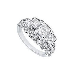 A princess-cut diamond takes the centerstage between smaller square diamonds. Other round & princess diamonds are accentuated on the three sides...