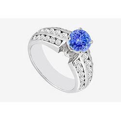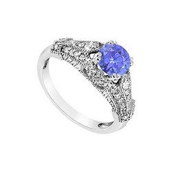 Tanzanite And Diamond Engagement Ring : 14K White Gold - 0.75 CT TGW