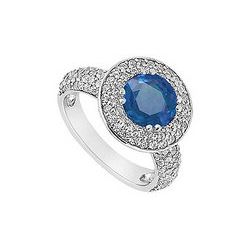 Sapphire And Diamond Halo Engagement Ring : 14K White Gold - 1.55 CT TGW