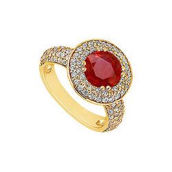 Ruby And Diamond Engagement Ring : 14K Yellow Gold - 2.25 CT TGW