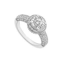Diamond Halo Engagement Ring : 14K White Gold - 1.00 CT Diamonds