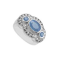 Sapphire And Diamond Ring : 14K White Gold - 1.75 CT TGW