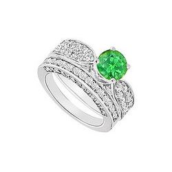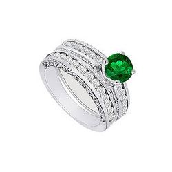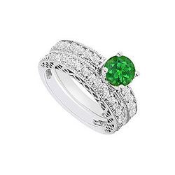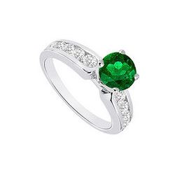 Emerald And Diamond Engagement Ring 14K White Gold 1.10 CT TGW