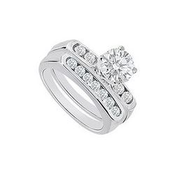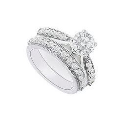 14K White Gold : Diamond Engagement Ring With Wedding Band Set 1.20 CT TDW