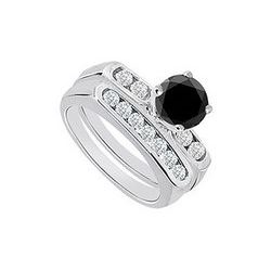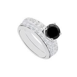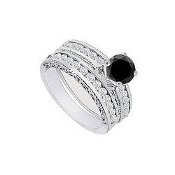 Black & White Diamond Engagement Ring With Wedding Band Sets 14K White Gold 1.35 CT TDW