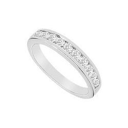 A bigger brilliant-cut diamond is prong-set atop in the center and an endless circle of diamonds set in between milgrain edges of the whole band conve