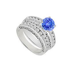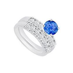 Sapphire & Diamond Engagement Ring With Wedding Band Sets 14K White Gold 1.75 CT TGW