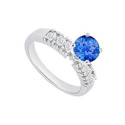 Sapphire And Diamond Engagement Ring 14K White Gold 1.10 CT TGW