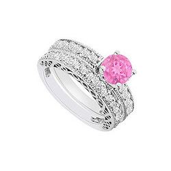 14K White Gold : Pink Sapphire And Diamond Engagement Ring With Wedding Band Set 1.20 CT TGW