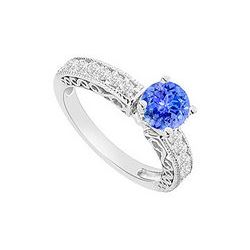 Tanzanite & Diamond Engagement Ring With Wedding Band Sets 14K White Gold 1.00 CT TGW