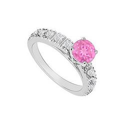 Pink Sapphire And Diamond Engagement Ring 14K White Gold 0.80 CT TGW