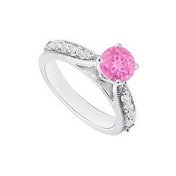 Pink Sapphire And Diamond Engagement Ring 14K White Gold 1.10 CT TGW