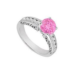 This great valuable engagement ring with prong-set round pink sapphire in the center and is accented by brilliant-cut smaller channel-set diamonds. Ma