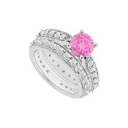 These complete sets of genuine engagement ring with wedding band set in the center a bigger round pink sapphire is prong-setting. Other smaller round