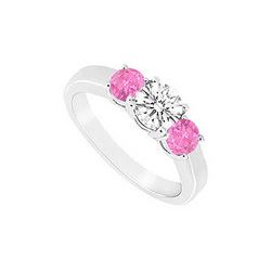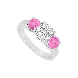 Three Stone Pink Sapphire And Diamond Ring : 14K White Gold - 1.50 CT TGW