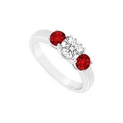 Three Stone Ruby And Diamond Ring : 14K White Gold - 0.33 CT TGW