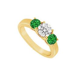 Three Stone Emerald And Diamond Ring : 14K Yellow Gold - 0.50 CT TGW
