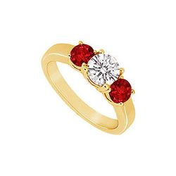 Three Stone Ruby And Diamond Ring : 14K Yellow Gold - 0.50 CT TGW