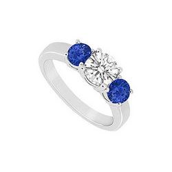 Three Stone Sapphire And Diamond Ring : 14K White Gold - 1.00 CT TGW