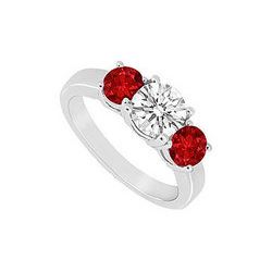 Three Stone Ruby And Diamond Ring : 14K White Gold - 1.25 CT TGW