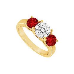Three Stone Ruby And Diamond Ring : 14K Yellow Gold - 1.50 CT TGW