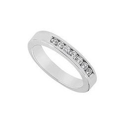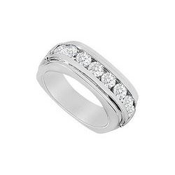 Seven brilliant-cut round diamonds are channel-set in a straight row. This sleek yet tough ring is made in 14K white gold & has a total weight ...