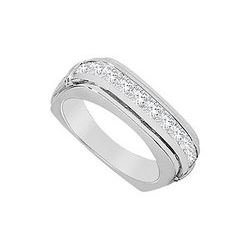 This bold male square ring has 11 princess-cut diamonds in exquisite channel-setting. Made in solid 14K white gold this ring has a total weight (TDW)