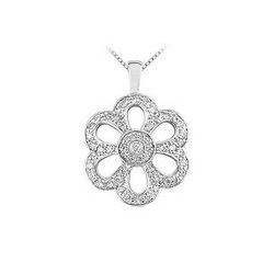 Diamond Flower Pendant : 14K White Gold - 0.15 CT Diamonds