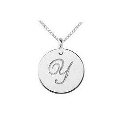 14K White Gold Plain Letter Y Script Disc Initial Pendant