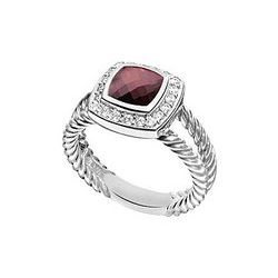Center is a bigger bezel-set square garnet encircling by smaller brilliant-cut diamonds. Both sides delicate with two separate rope design join toget