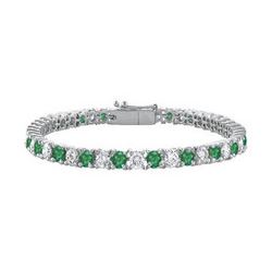 Frosted Emerald And Cubic Zirconia Prong Set 10K White Gold Tennis Bracelet 10.00 CT TGW