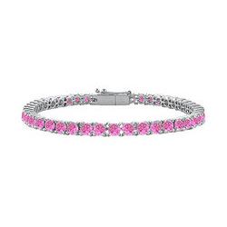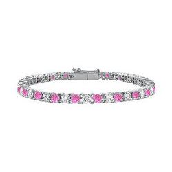 Created Pink Sapphire And Cubic Zirconia Prong Set 10K White Gold Tennis Bracelet 4.00 CT TGW