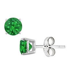 A bigger round created green emerald is accented by two smaller frosted emeralds on the sides. Made in 10K white gold this three stone ring has a tota