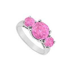 Created Pink Sapphire Three Stone Ring .925 Sterling Silver 3.00 CT TGW