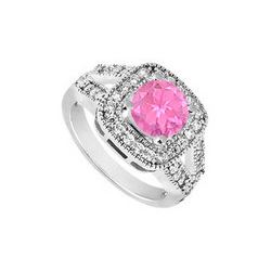 Pink Sapphire Engagement Ring With Cubic Zirconia In 14K White Gold 1.70 Carat TGW