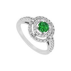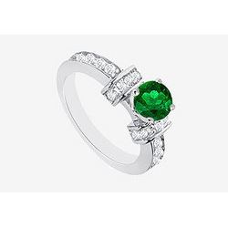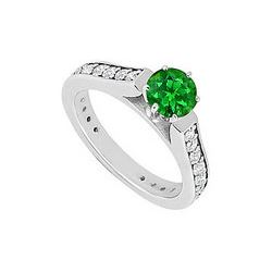 Frosted Emerald And Cubic Zirconia Engagement Ring 10K White Gold 1.00 CT TGW