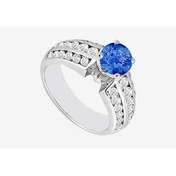 Sapphire Engagement Ring In 14K White Gold Channel Set CZ 1.60 Carat TGW