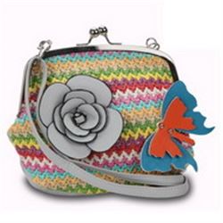Fashion Crossbody Bag W/ Multi-Colored Woven Straw Front & Flower - Grey