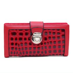 Snakeskin Fashion Zip Around Wallet with Rhinestone Fleur de Lis and Metallic Shimmer - Yellow